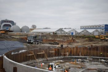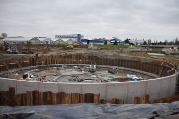 Intensywne prace ziemne polegające m. in. wykonaniu wykopów bardzo zmieniły krajobraz oczyszczalni. Wykonano już znaczna część planu. Powstały już trzy poletka osadowe, wykonano konstrukcję żelbetową komory rozdziału ścieków i umocnienie wykopów grodzicami stalowymi pod osadniki.