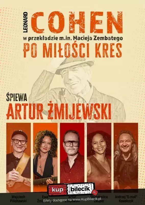 Artur Żmijewski, jeden z najbardziej znanych i cenionych polskich aktorów, tym razem zaskakuje w nowej roli, prezentując program muzyczny z utworami Leonarda Cohena. Na koncertowej scenie usłyszymy takie utwory jak "Alleluja", "W tajnym życiu mym" (In My Secret Life), "Zuzanna", "Tańczmy po miłości kres" (Dance Me To The End of Love), "Wspomnienie" (Memories) oraz wiele innych. Każdy z nich, dzięki doskonałym tłumaczeniom autorstwa Macieja Zembatego, Romana Kołakowskiego i Michała Kuźmińskiego, zyskuje nowe życie, wprowadzając słuchaczy w świat pełen poezji, emocji i głębokiej refleksji.