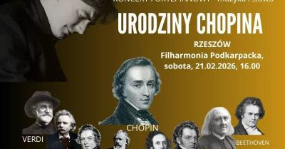 Zapraszamy 21 lutego 2026 roku do Filharmonia Podkarpacka im. A. Malawskiego, Rzeszów, ul. Fryderyka Chopina 30.