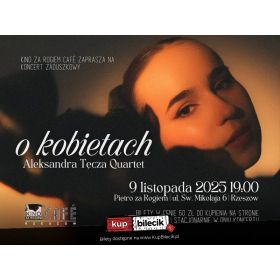 bilety: Kino za Rogiem Café zaprasza na koncert zaduszkowy "O kobietach" w interpretacji Aleksandra Tęcza Quartet przeniesie słuchaczy w subtelny, pełen emocji świat muzyki i poezji. To nastrojowa podróż przez portrety kobiet, ich wrażliwość, siłę i piękno, ukazane w jazzowej oprawie. Bilety do nabycia na: KupBilecik.plAleksandra Tęcza Quartet artyści: Aleksandra Tęcza QuartetKoncert zaduszkowy "O kobietach" w interpretacji Aleksandra Tęcza Quartet przeniesie słuchaczy w subtelny, pełen emocji świat muzyki i poezji. To nastrojowa podróż przez portrety kobiet, ich wrażliwość, siłę i piękno, ukazane w jazzowej oprawie. Bilety do nabycia na: KupBilecik.pl |