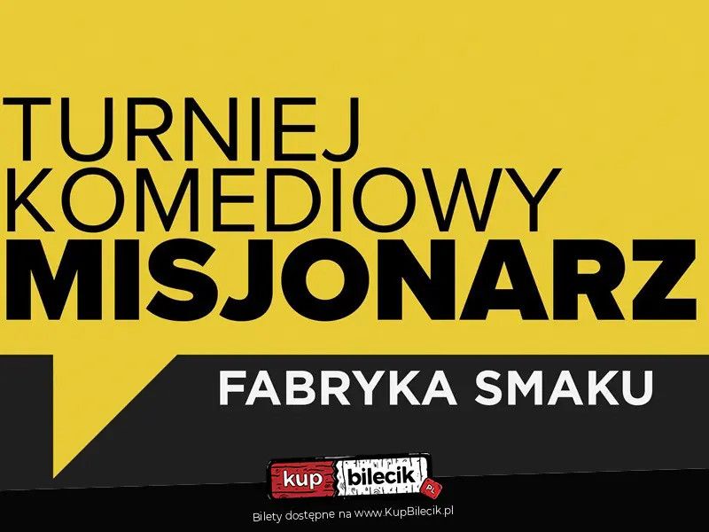 | Stand-up Rzeszów prezentujedodano 2026-02-23 11:14:56 Zapraszamy na Misjonarza! Jest to Turniej Komediowy, być może to pierwszy taki turniej w Polsce, a nawet na całym Podkarpaciu. W Fabryce Smaku czterech komików będzie walczyć w bitwach na żywo, na niby i na ekranie. Wszystko to ku ucieszę loży szyderców, czyli publiki. Nie przegap! Wydarzenie poprowadzi Maciek Ambicki. Stand-Up Rzeszów artyści: Maciek Ambicki, Kubuś Pudło, Natalia Adamowska, Piotrek JaskułaMaciek Ambicki, Kubuś Pudło, Natalia Adamowska oraz Piotrek Jaskuła pełni szczęścia, pomysłów i z umiarkowaną dumą zapraszają na komedię z sercem, w sercu podkarpacia. Oraz na występy spoza Rzeszowa w projekcie "Ucieczka z Podkarpacia". Bilety do nabycia na: KupBilecik.pl |